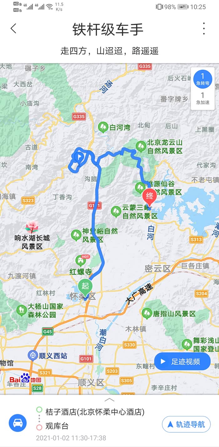 本次出行的假期是选在了元旦1号至3号3天的小假期,从北京市朝阳区望京区出发,前往怀柔区,主要途径的景点有白河峡谷、密云水库等,以山路兜风观光为主,适合喜欢开车兜风转山,节奏轻松休闲的朋友,全程共429km。让我们来回顾一下主要的路书吧~