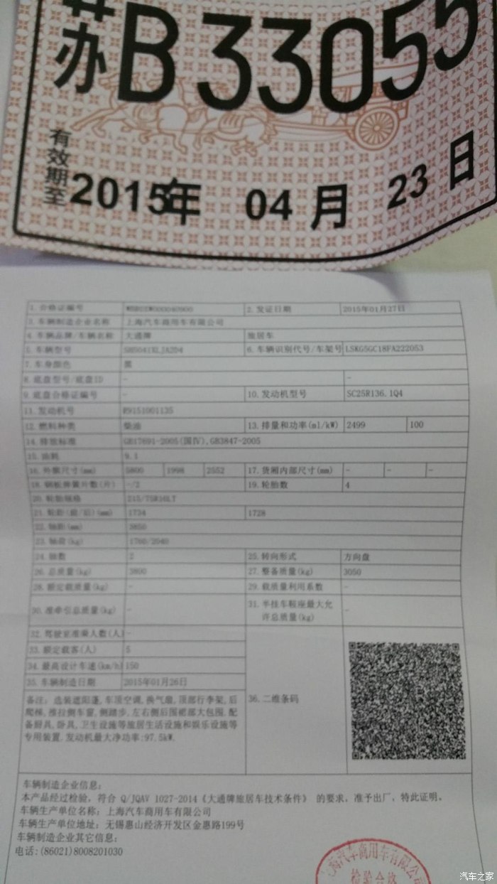 朋友在厂里又从新办了临时牌照.还有旅居车合格证