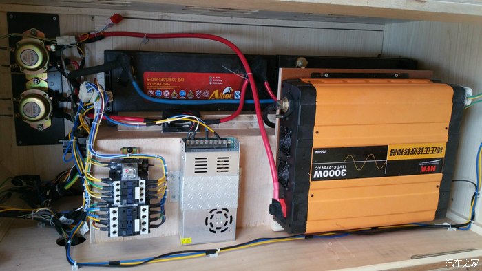 为了安全用的是3000瓦的正正弦波逆变器]有点大了..这么大的逆变器本身耗电也是很大的哦..用用在看吧不行在加个小点的