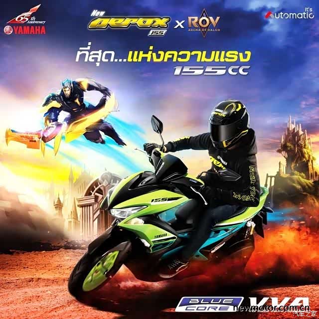 Aerox 155 是一款国内很多两轮爱好者都熟知的车型,部分国家/地区销售的版本曾叫做 NVX155,真正的工厂型号叫做 GDR155。该车搭载一副水冷四冲程单汽缸、SOHC 四汽阀、带 VVA(Variable Valve Actuation,可变汽阀驱动)和 Blue Core “ 蓝芯 ” 标记的发动机,缸径、行程为 58 mm x 58.7 mm,排汽量 155 cc,最大动力输出 11 kw。新的 2020 版 Aerox 155 有一个新的车体图案,全 LED 的灯光系统,5.8 英寸负显的数字式仪表板等。