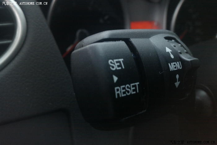 第二步,左手按住转向灯杆顶端的“SET”按钮不松手。见下图