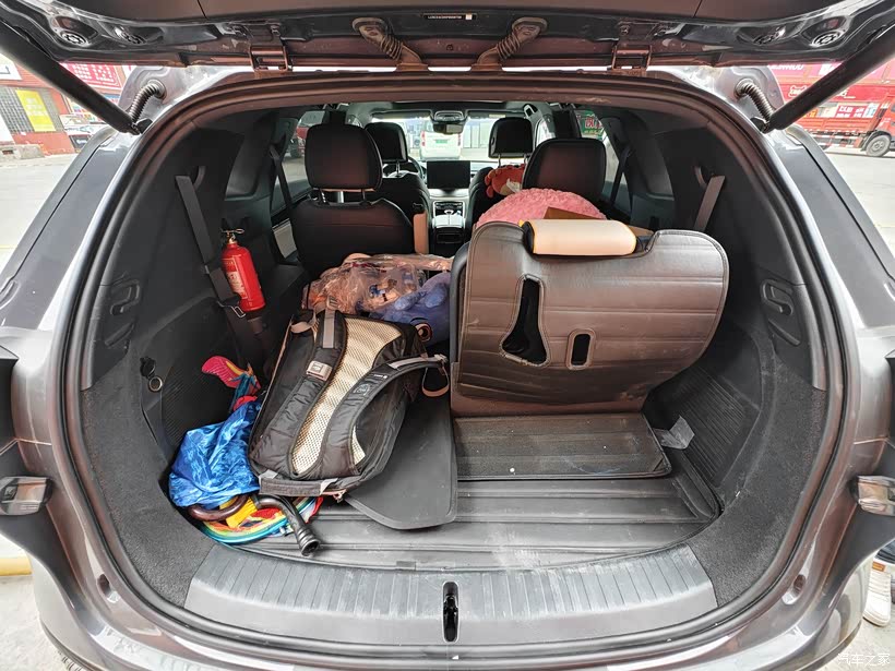 看看这后备箱空间,即便后面两排都拉起来也是轻松放两个登机箱