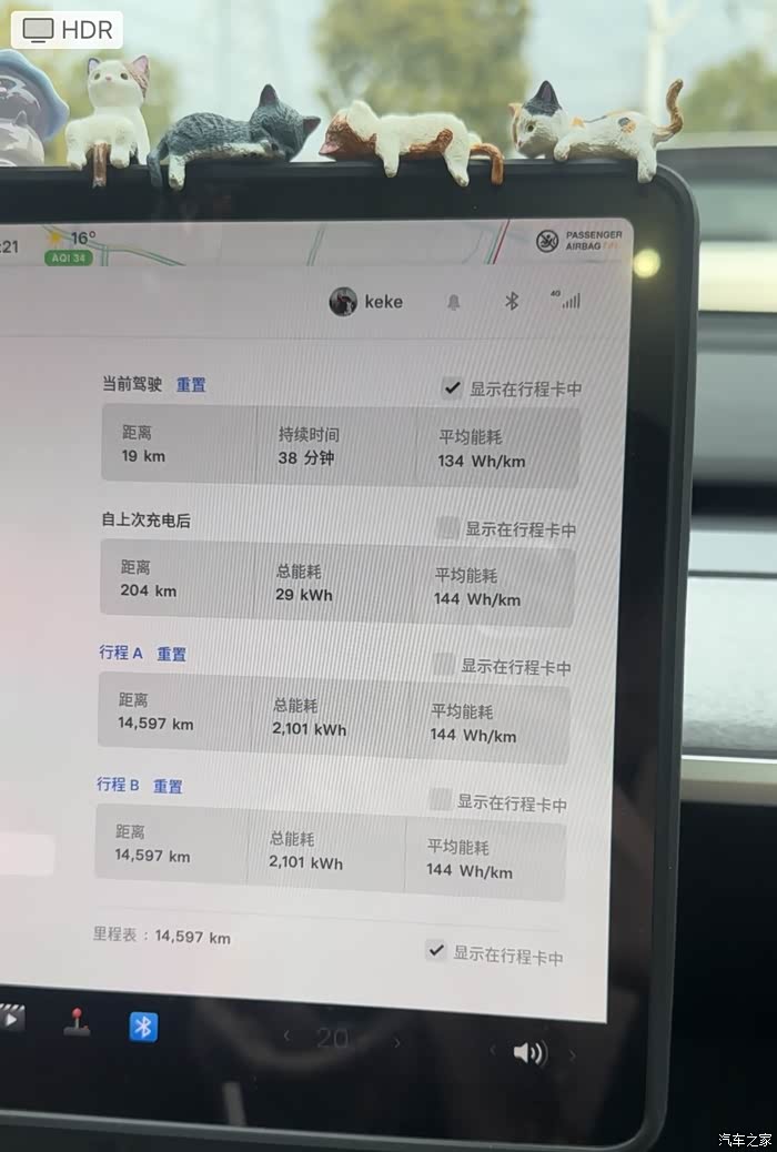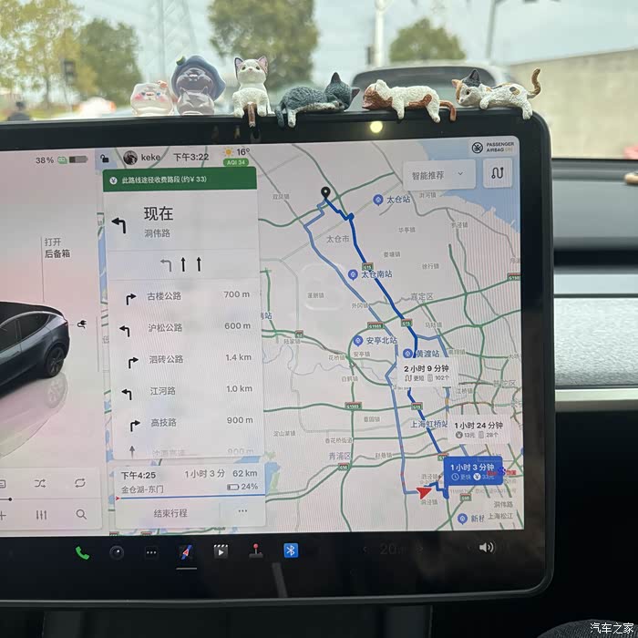 从上海松江到太仓金仓湖的单程约60公里,Model Y的能耗表现非常优秀,我往返的总能耗约为14kWh/100km,按照上海的电价计算,电费仅需约20元,太节省了!自从买了电车之后,想去哪里就可以立刻出发,不用担心油耗费用,因为电车真的很省!