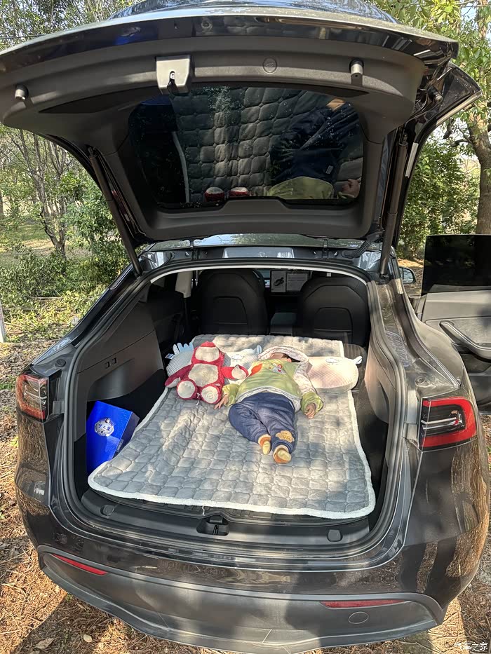 特斯拉Model Y这辆车太适合露营啦。后备箱空间大,轻松容纳所有露营装备和钓鱼装备,还有前行李箱增加储物能力。就算不带帐篷与野餐垫,只需要把后排座椅放平,就可以拥有一个野餐台啦,可以在里面躺着休息,也可以当做桌子摆放食物。而且车内静谧性极佳,小侄女下午睡着了直接躺在后备箱里,关上车门,就算周围人声吵闹也不会打扰到小侄女睡觉哈哈哈哈。