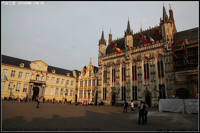 在市政厅大楼的广场上最醒目的建筑是高达83米的BelfryTower(Belfry钟楼),它也是布鲁日明信片上的主要代表。钟楼的47口钟从清晨7点至晚间9点每一刻钟奏响一次,不仅有弗莱芒民族乐曲,还能演奏比才的卡门。钟楼旁边是州立法庭(HetProvinciaal Hof),这座乳白色新哥特式建筑看上去比科隆教堂要俏丽可爱得多。它身旁砖红色的建筑是布鲁日邮局。 哥特式的市政厅,文艺复兴风格的和平法庭,新古典主义的审判庭,巴洛克风格的主教宫以及犹太教的圣血圣堂(Chapelof the Holy Blood)。比起繁忙热闹的GroteMarke,Burg Square 给人一种温存宁静的感觉。