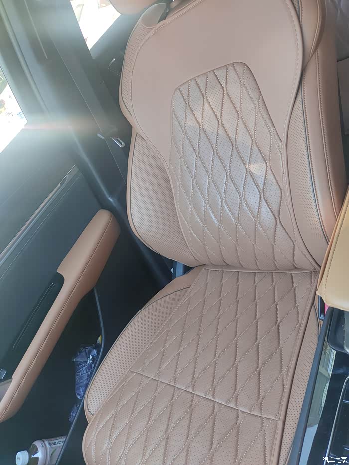 4、Tpu膜和扶手箱套:重点我觉得是最实用的,就是tpu膜,因为车辆是钢琴烤漆的,内饰比较多,而且它是比较招惹划痕。我是刚提车的时候就已经整车都贴了,基本上现在都没有任何划痕。还有一个是扶手箱套,一开始我是没有选购,但是后来发现儿子经常会把东西放在上面,然后原车的扶手箱皮经常容易脏,而且不怎么好打理,我就买了一个真皮的扶手箱套套上去之后,我发现整体的高度也能提升一点,手开车的时候架在上面也比较方便,还有一个更关键的是也更好的保护了原来的车扶手箱表面的清洁度。