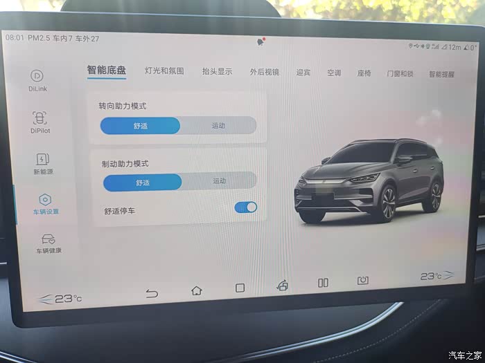 车机设置方面,我分享一下我的一些安全设置方面的情况。我在下图特意放了设置界面,我想说的是,如果在高速上一定要把转向助力模式和自动助力模式调为运动。这个在关键时刻可以有效的避免你的事故发生。如果你调成舒适模式它是会有一段滑行的距离的,这样很容易造成追尾。
