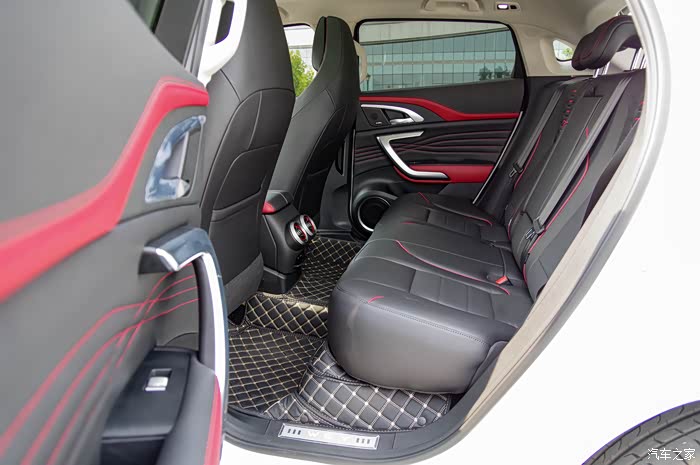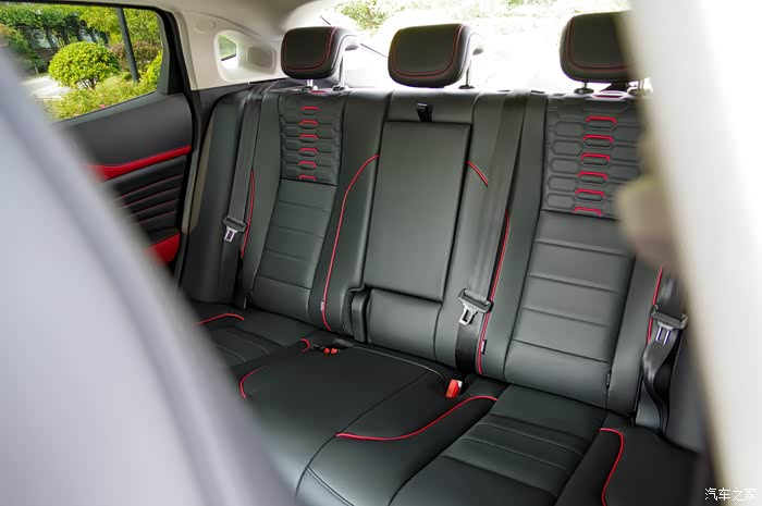 于内,第一眼看到的是黑红配色的,一体化赛车风格座椅