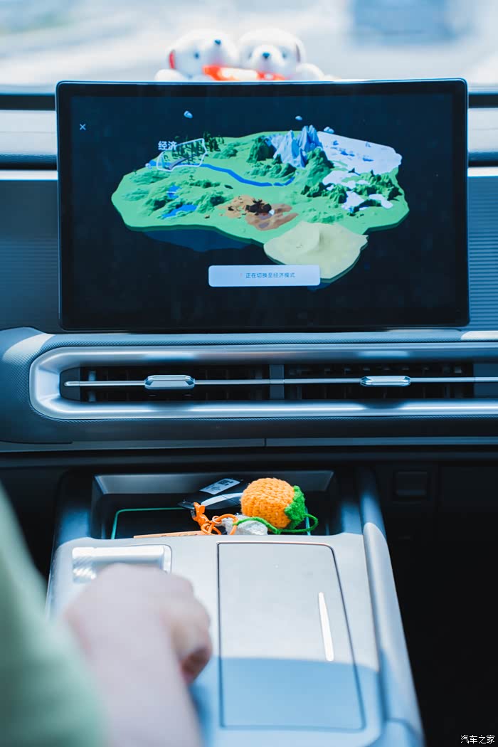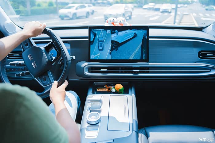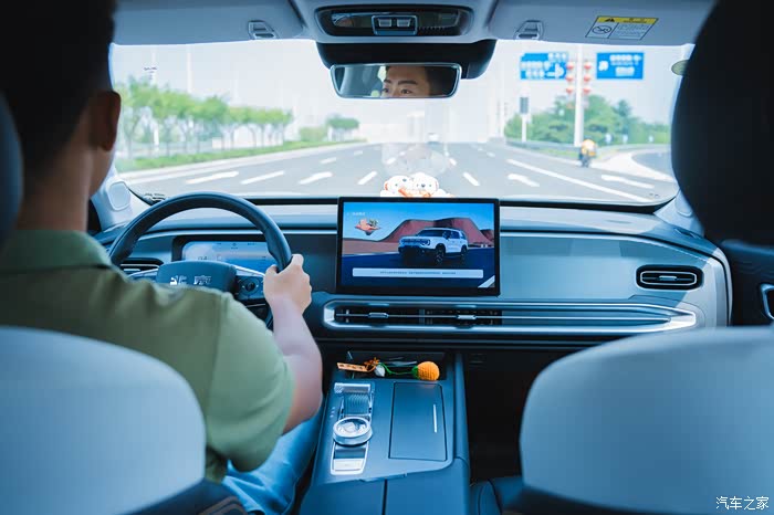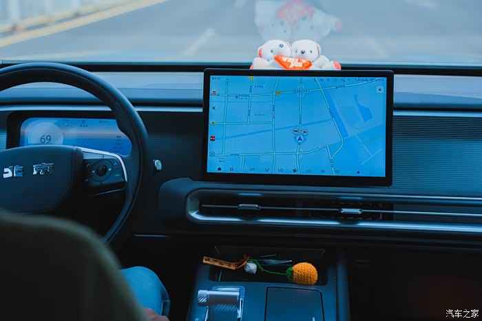 这车机设计悬浮式的,它跟仪表平行,看地图也不用低头了,视线始终保持在前方,开车更安全。