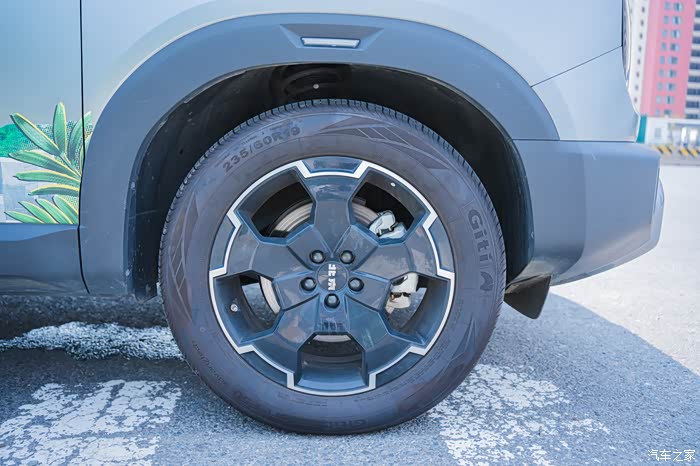 这轮胎规格,235/60R19,简单说,就是宽胎面、厚胎壁,还配了19寸的大轮毂。跑起来稳当,抓地力强,不管是城市路面还是复杂路况,都能轻松应对。