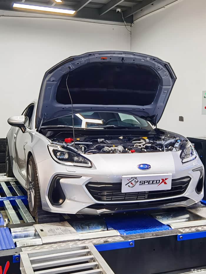 在Mainline马力机上,新BRZ原厂状态大约能拉出轮上160匹,这里因为早已改过HKS全段排气(HKS三元芭蕉、S管、HKS三元前管、HKS Legamax Sports 中尾段)并且ECUTEK刷过,所以拉出来轮上200匹。