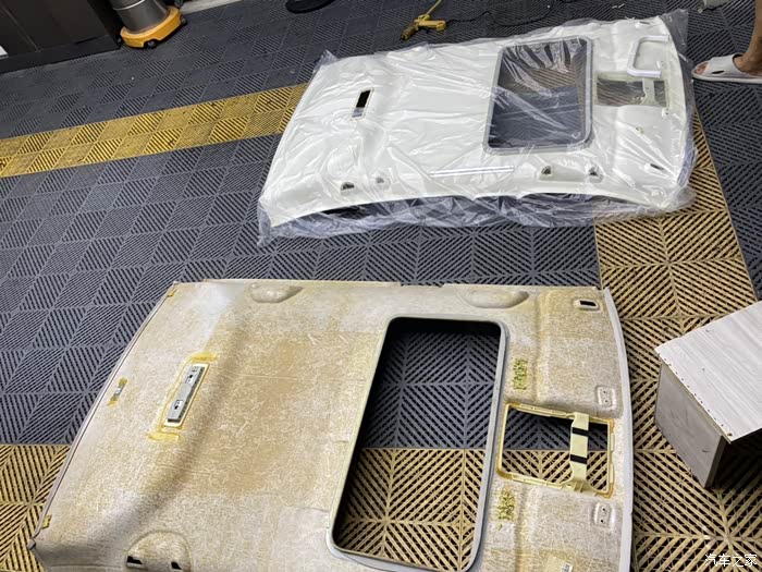 众所周知老款的朗逸内饰顶棚都有一个通病,那就是到了一定的年限顶棚都有脱落的现象,很早以前楼主都是用论坛的很多小办法自己搞定,比如图钉钉上去,不过时间长了还是治标不治本,脱落面积越来越大,最终都是只能更换顶棚,这一次我也顶不住了,直接更换整个顶棚。