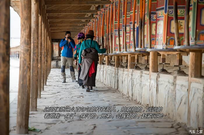 拉卜楞寺,拥有世界上最长的转经长廊,共有一千七百多个转经桶,环绕整个寺院,绵延3.5公里长,很是壮观,从我拍照的角度一样望去根本望不到头,要转完所有的转经筒,大约需要一个半小时。