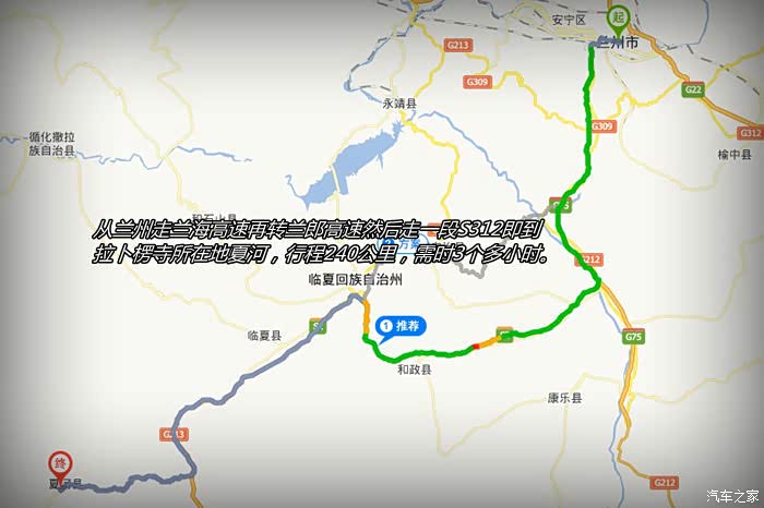 今天,我们将离开兰州挺近甘南,第一站是拉卜楞寺所在地---甘南夏河县。沿途多为高速,只有一条段省道,路况不错。这一路随着海拔的逐渐升高,地貌也将由黄土高原逐渐向丘陵沟壑再到高原草甸。不仅如此,因路过临夏回族自治州,沿途建筑风格也由普通的汉族建筑风格转向圆穹尖顶的***建筑风格,继而再转向藏族颜色丰富宗教色彩浓厚的藏族建筑风格,美不胜收,出发!