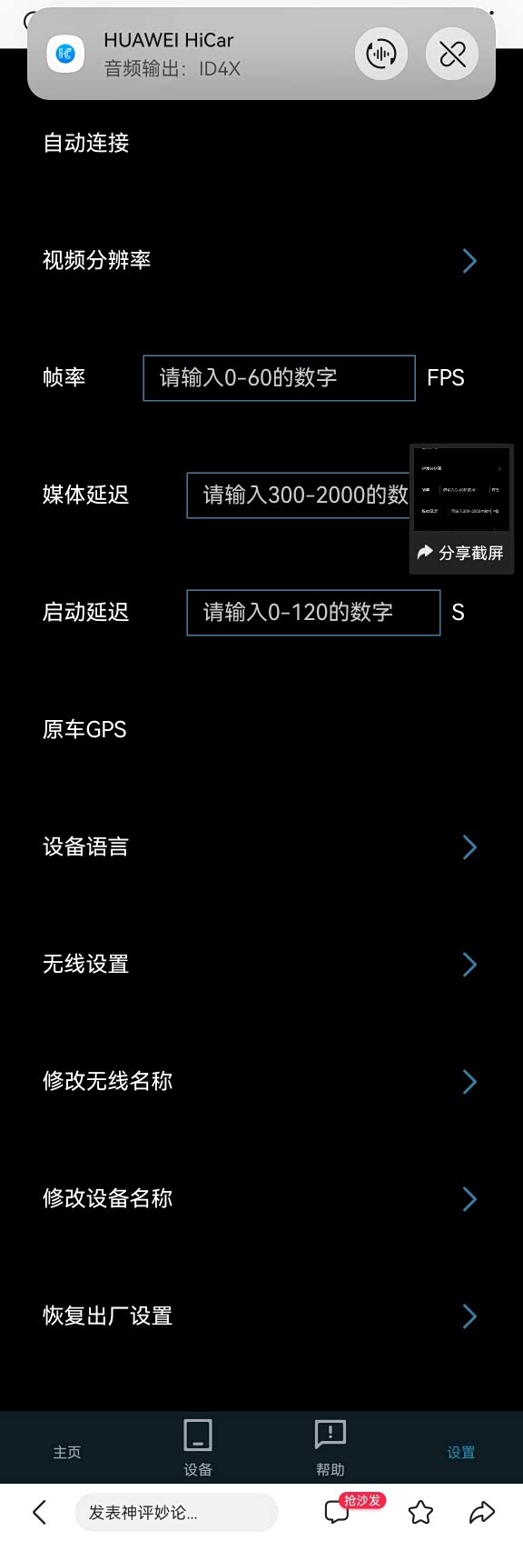 目前使用了1周左右的时间,首次连接配对后,上车自动连接这一点很不错。HICAR通过WIFI传输显示画面,通过蓝牙传输音频,流畅度没问题。