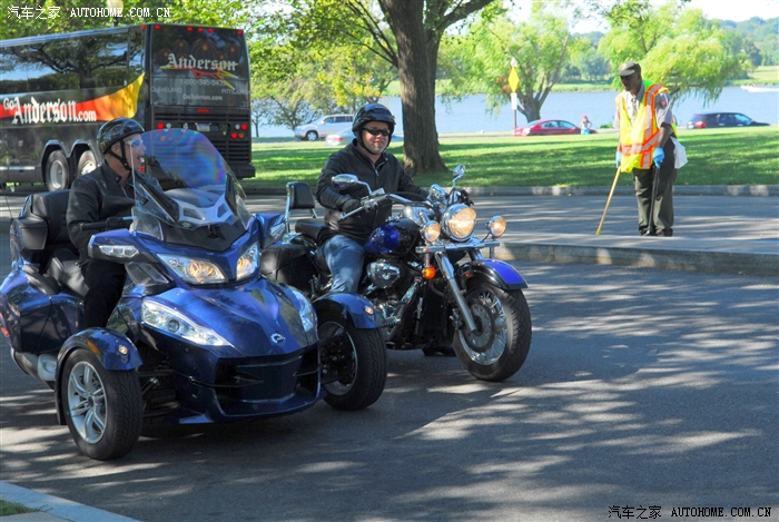 骑着哈雷的美国佬。陪同告诉我们,哈雷是美国人的玩具,一般是玩的时候才骑它。
