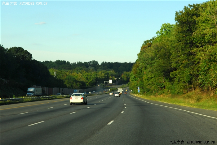 去华盛顿的路上。途中看到一队校车,在美国,校车可是老大。