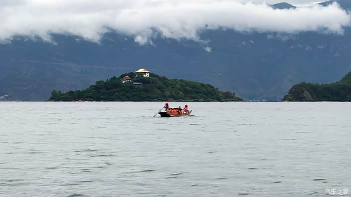湖中的里务比岛,属云南地界,岛上有个里务比寺