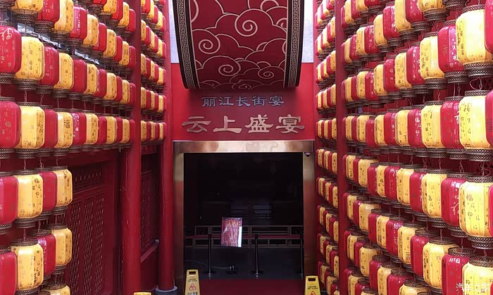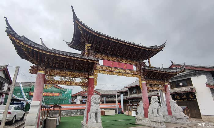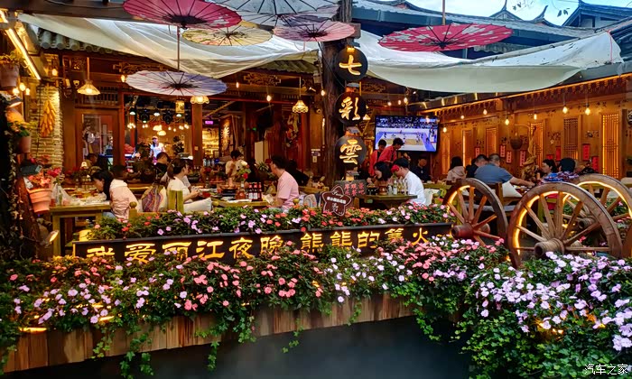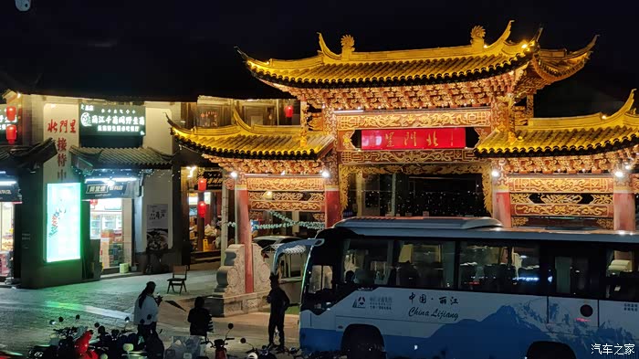 傍晚驻车丽江市金虹路北门坡停车场,这是停车场出入口,看样子以前是个大市场,大棚子下停个四十台车没问题