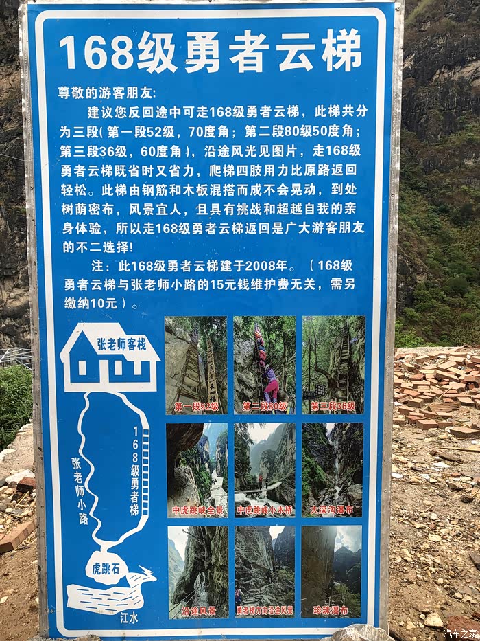 路边的下虎跳标志。此处进隧道的话即去往“白水台”景点方向。我是继续沿江边的路过江去往大具乡方向