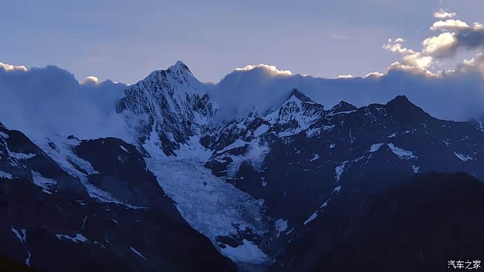 18:50途经卡瓦格博峰观景台。卖咖啡的小伙子说这个季节这里已经20多天没看见过日照金山了!