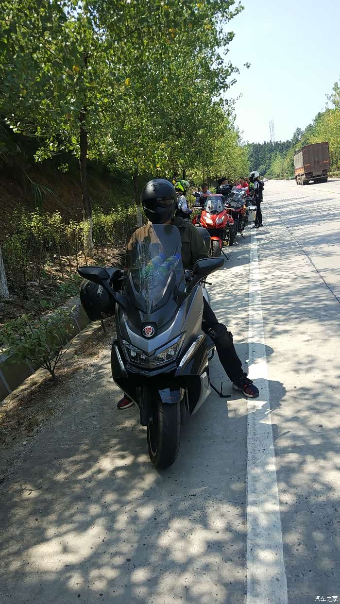 7.29日十几辆车一起去了九江莲花森林公园玩,来回300公里,带上媳妇,我155斤,媳妇125斤,共280斤,RT3车重近400斤,高速上表显120码还是很有力,与同行的光阳赛艇250,GW250不落下风。