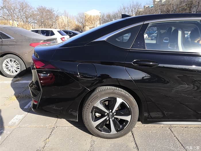 17英寸的铝合金轮毂,是双色设计,而且还有明显的斜面刀锋造型,米其林品牌的静音轮胎,让它开起来十分安静,有2次带着客户办事,他们对iA5的评价,都感觉它很安静舒适,这让我觉得,iA5不仅适合家用啊,它还可以兼顾一些商务用途呢,而且我这个黑色本就沉稳庄重,所以更显大气了。