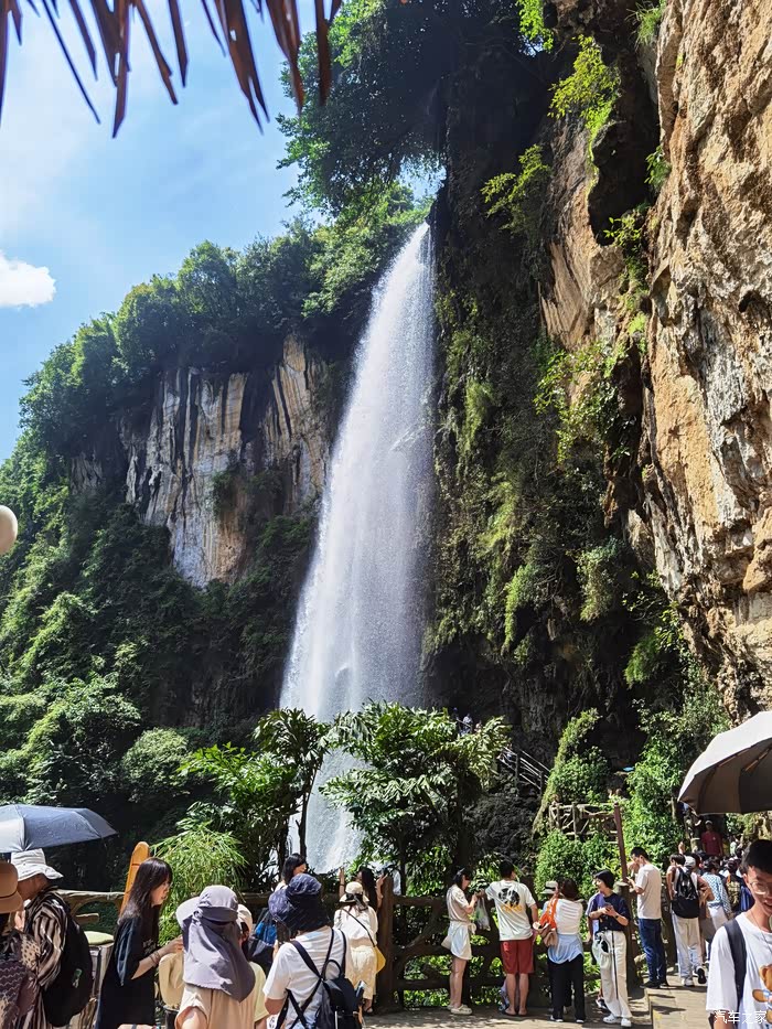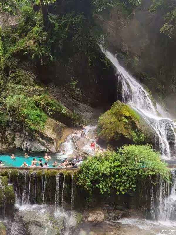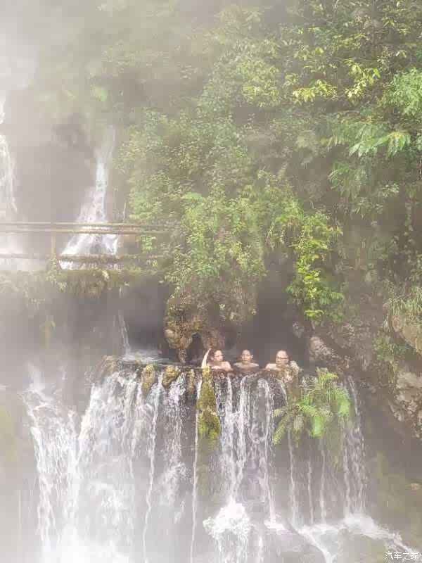 就是这个,就是为了早点进去,螺髻山九十九里温泉瀑布,这瀑布是天然的,还是温泉。