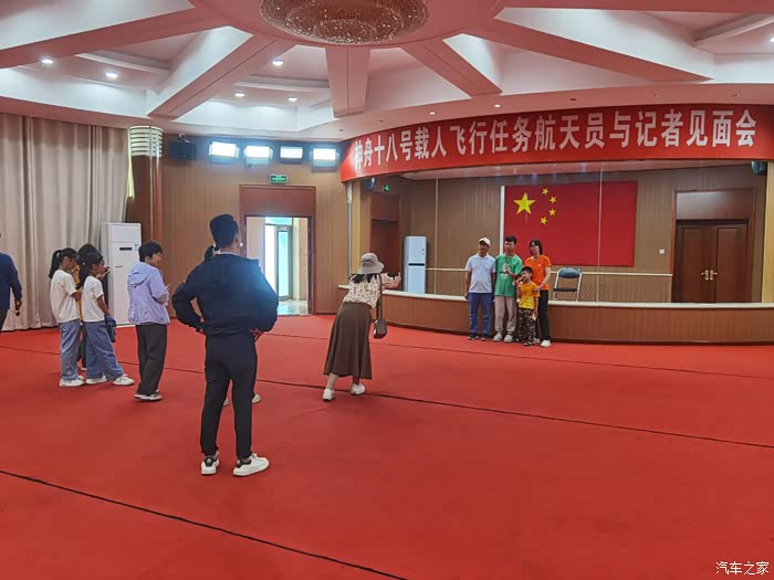 问天阁内部,新闻发布厅,五星红旗下那三张椅子就是航天员出发前坐的,很简朴。