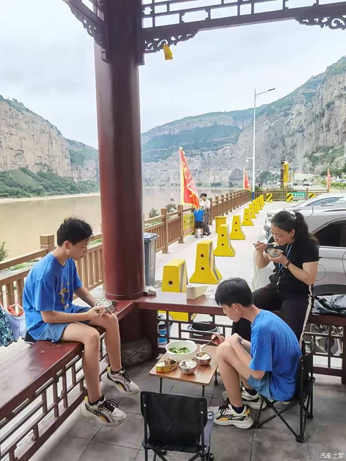 就在大梯子景区旁,黄河边做个午饭。午餐后开始刮风下雨了。路上没停留,赶往乾坤湾。