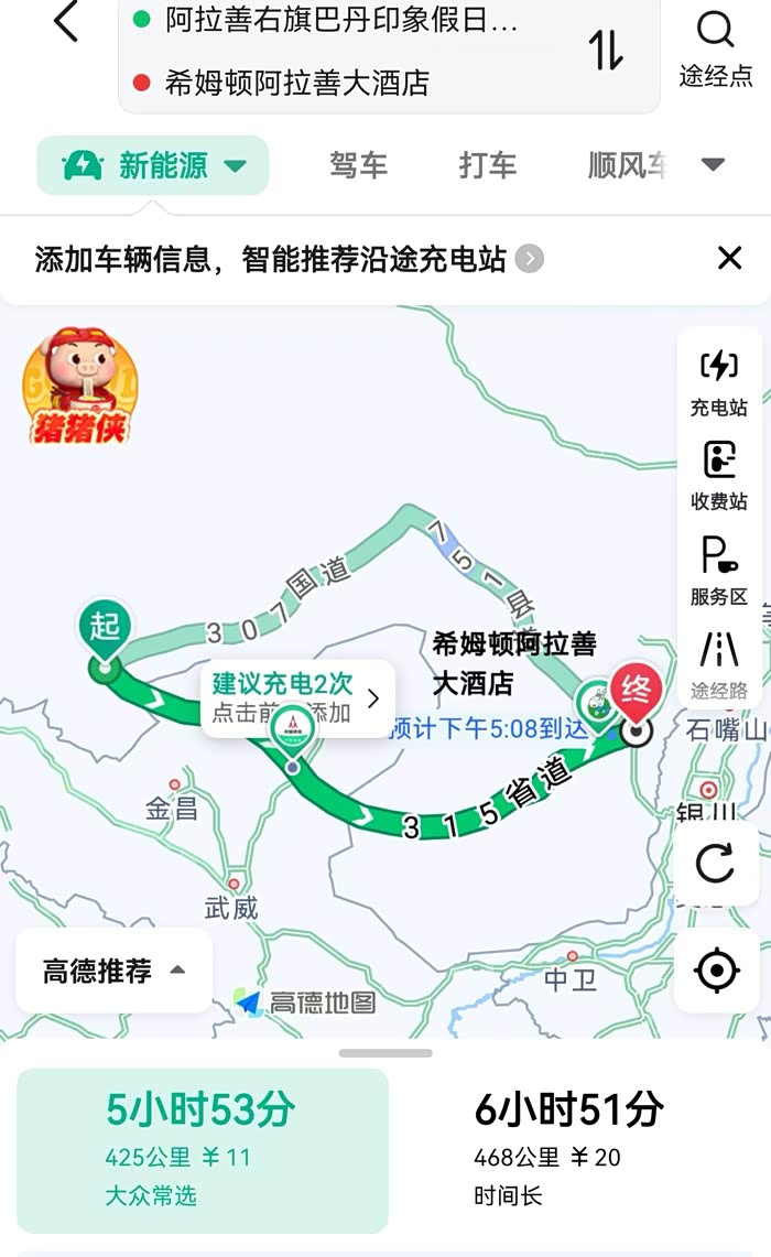 8月7日。阿拉善左旗到右旗。左旗到右旗有3条路可选,第一条是经河西走廊,高速多,但远。第2条是横穿腾格里沙漠的穿沙公路,还有一条是巴丹吉林沙漠与腾格里沙漠之间307国道。我选的是中间这条穿沙公路,横穿沙漠,对南方人来说,最刺激。