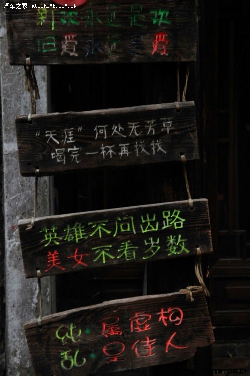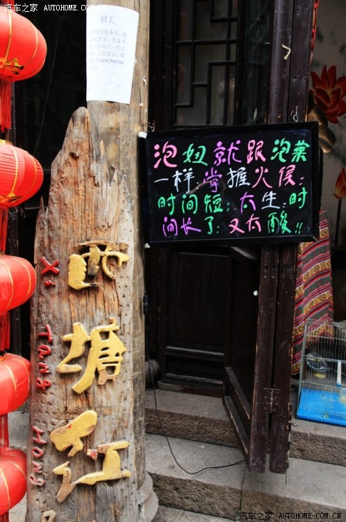 在苏州上高架,然后经苏嘉杭高速再转到同黎线,下午3点多到达西塘,憋气来过这里多次,径直把车开到居委会的院子,这里有专人看车每晚20元。本来很多攻略说平时查票不严,但实际很多路口都有查票,憋气说进村的路口有十几个,带我们绕了一会就转进去了。进去后找客栈的功夫看里面的商铺都很有调调,就随手拍了一些。因已是周末,临河客栈的价格比平时要贵些,两个房间要400。定好客栈后再到村子外吃饭,外面的餐馆要实惠一些,找到一家重庆人开的川菜馆,点了水煮肉片、川菜几个菜,味道都不错,在饭店喝完一箱雪花啤酒,又到超市买上一箱和一些花生米之类准备回客栈继续喝。回去后他们两个喝的时候自己出去转悠拍了些夜景,买了点臭豆腐回来下酒,看相邻客栈的三个上海年轻人在划拳,禁不住凑一起划上一番,第一轮通杀他们三个,后来有输有赢,很快酒又不够了,只好又出去买一箱,喝到11点多,他们要去酒吧再喝,我们第二天要开车回去就睡觉了。