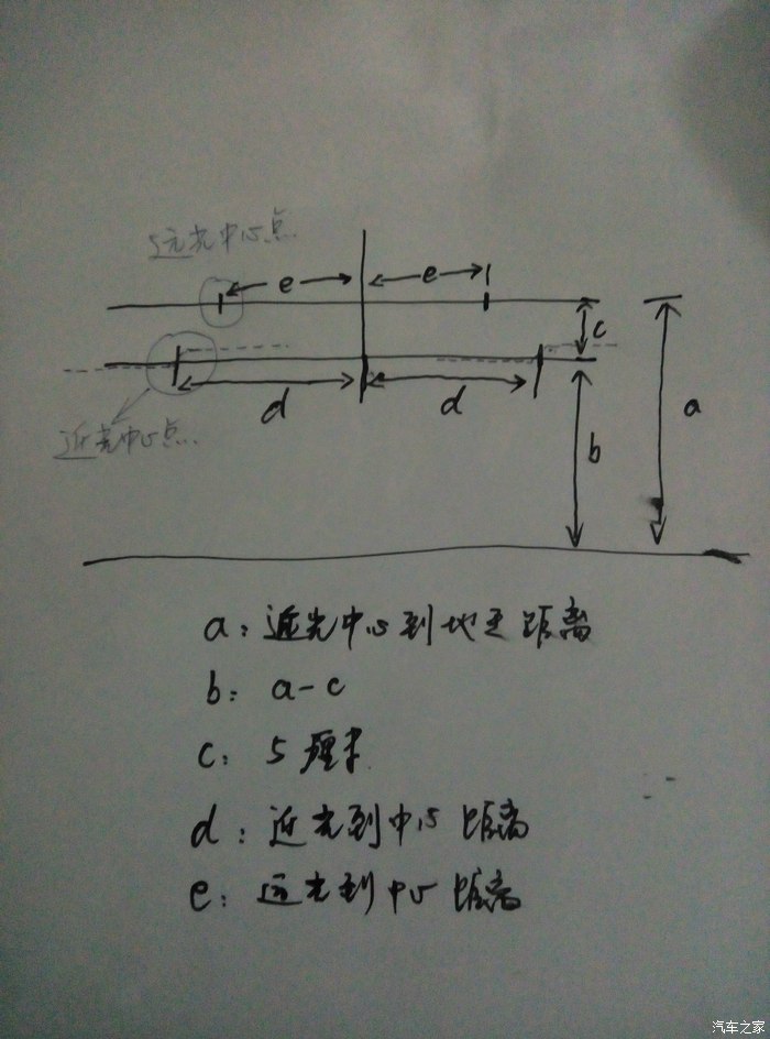 下面是自己调整氙气灯光线,车离墙7.5米,车头标志对着墙先确定一个中心线