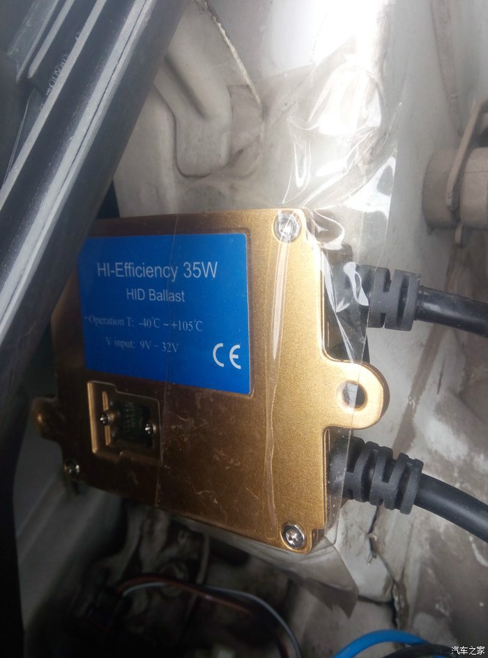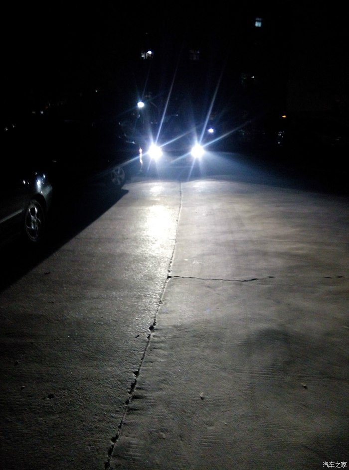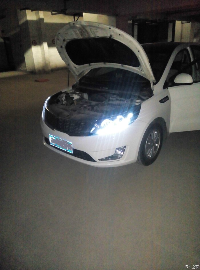 买车两年了,从买车时候就从网上了解大灯不亮,买车开了一段时间后后确实如此,就有了换灯的念头,但一直在改和买总成之间犹豫,看了很多车主的帖子,感觉改灯不是很安全,看他们钻孔又是从新接线,后了解大灯总成也不比改灯的成本多多少,所以就直接上的总成,但种种原因一直到今天才换,保养得时候在4S店换的,但是感觉4S店的水平一般,刚换好后开始试灯时,一个不亮,我当时一紧张,完了,不会是买了个坏的吧,赶紧联系卖家,卖家说换15或20的保险就好了,换了个15的后就好了。原车10安的保险老是坏。(4S店的修理工直接到屋里坐了着了,让我联系,也不帮我研究下不亮的原因,我可是附了安装费的,可真是“安装”,严重鄙视,安好后,我让他们把安定找个合适的地方给我安好,可是他们却随便找个地方给我粘那了。)当时光顾监督他们了,忘了拍照了。后来我开一段时间车后,白天没开灯的情况下,打开机舱盖用手一摸,安定特别热,机舱温度高,影响的安定的温度也高了,我想这要是开灯了还不定烫成什么样呢,后来从网上买了耐高温的双面胶粘到大灯下面了,后来开一段时间后,在一摸,哈哈,凉凉的。后来感觉灯照的有点高,后参考了好多资料后,自己把大灯从新调了下。
