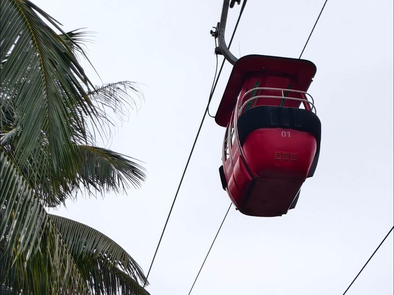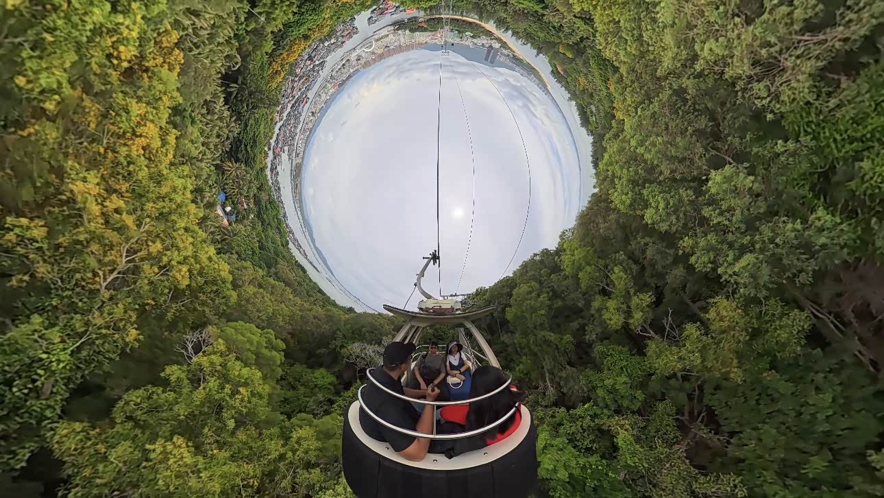 📸拍照技巧:① 索道视角:用insta360X5架在索道窗边,开启延时摄影,记录渔排、椰林、海湾逐渐铺展的全景画面;