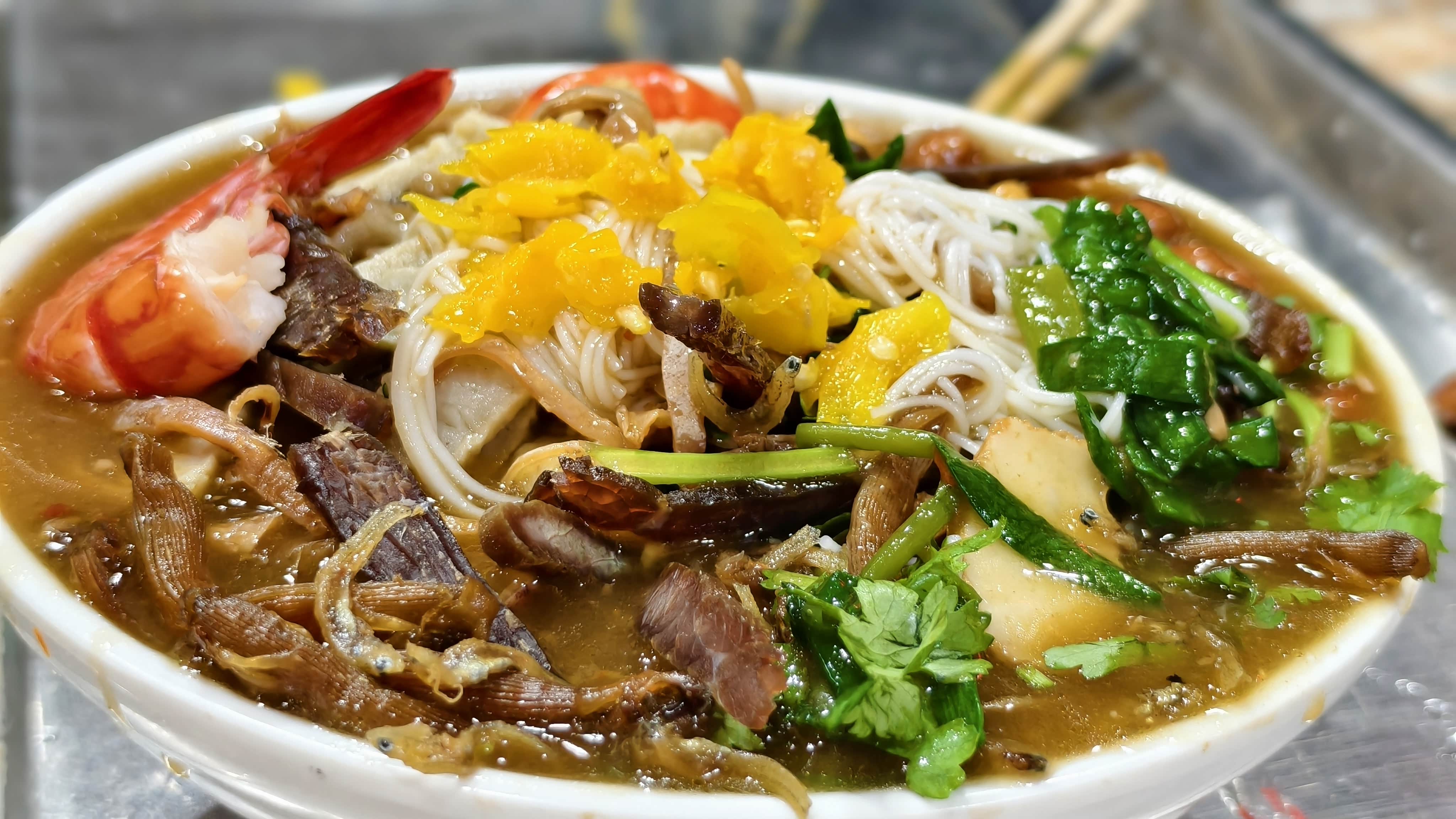 万宁「后安粉」(12元/碗):酒店附近的老店,汤底用猪骨熬了6小时,鲜得舌头都要掉下来。