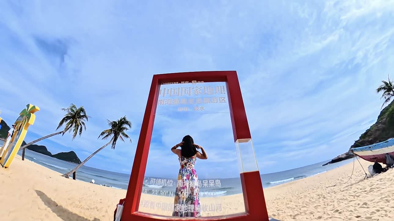 📸拍照技巧:① 打卡框构图:站在国家地理红框内,以碧海为背景,人物居中拍摄,无需修图也能出大片;