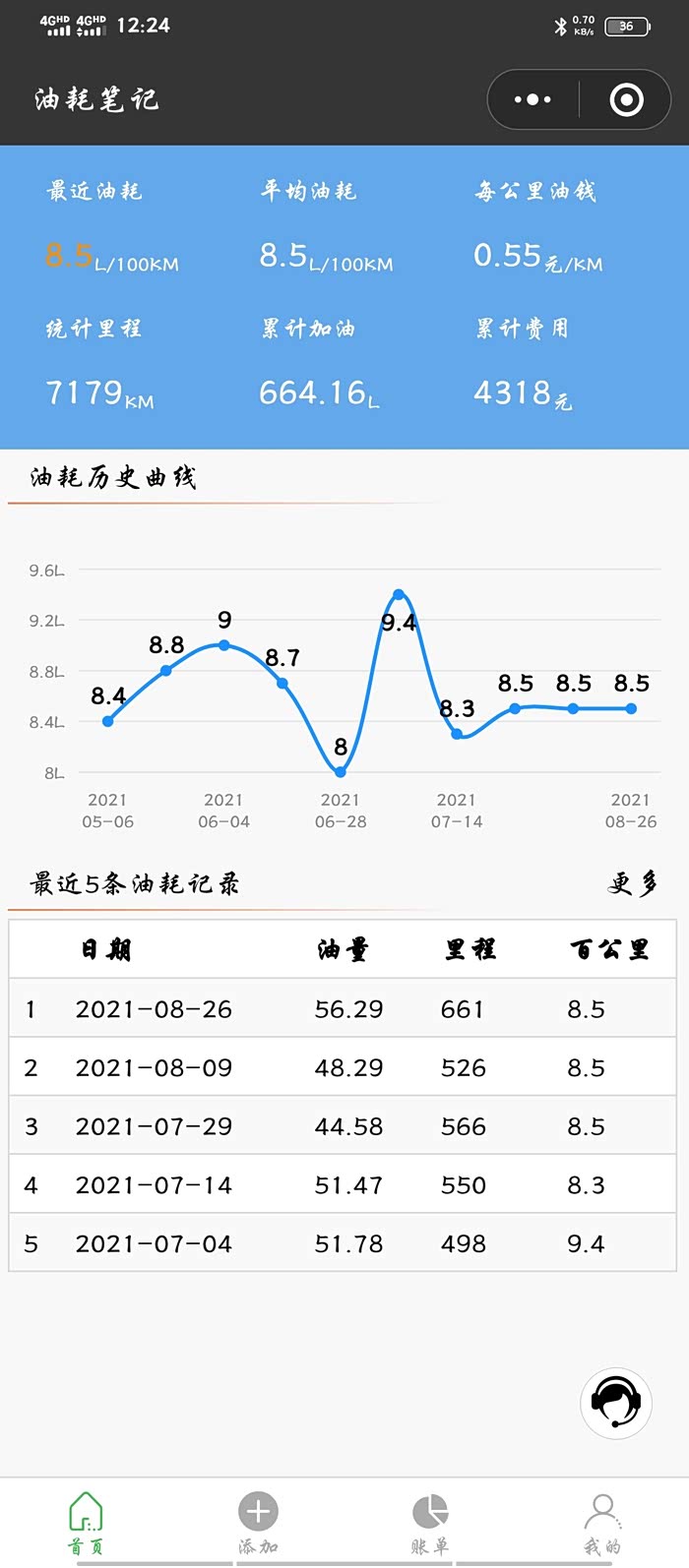 个人感觉油耗还行,这个油耗小程序也非常方便。