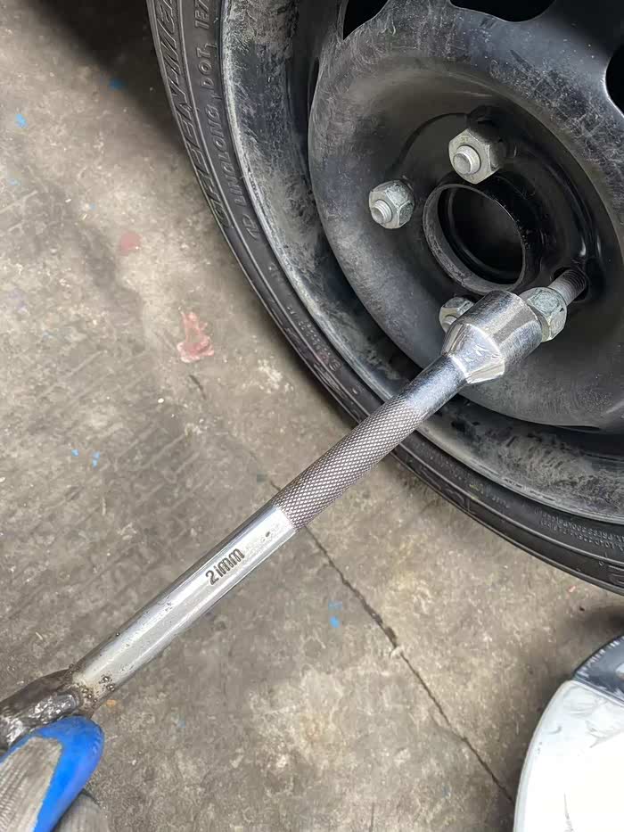 对于想自己购买拆轮胎工具的朋友门,我们轮胎螺丝套筒用的是21MM的