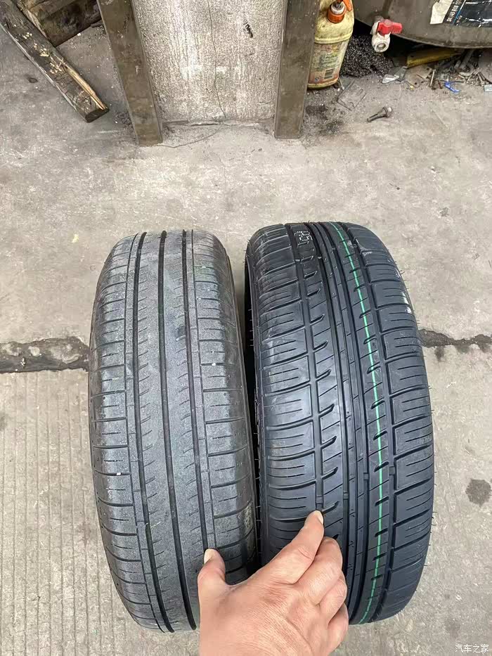 来来来,,新旧轮胎宽度不同的对比,肉眼看也是很明显的。