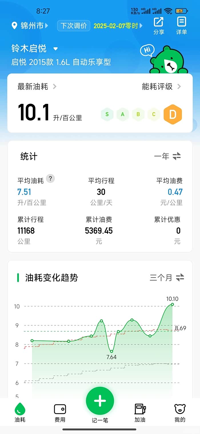 我是按升数算的,百公里6升