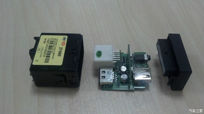 拉出来之后把USB的那个小模块拿下来,后面的两个插头拔掉,模块两边有两个小卡扣,轻轻一撬就推出来了。拿下来之后再轻撬两边,模块就打开了。