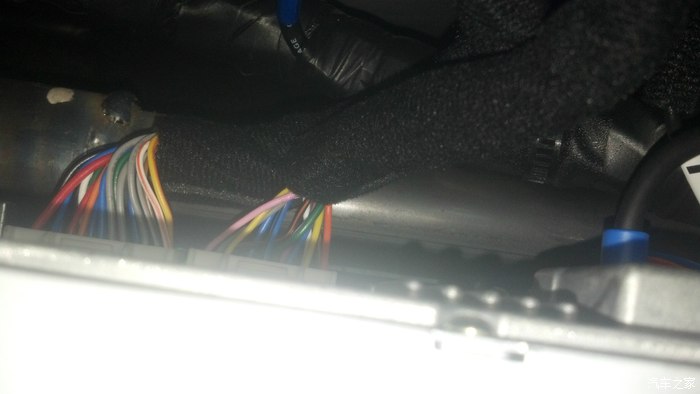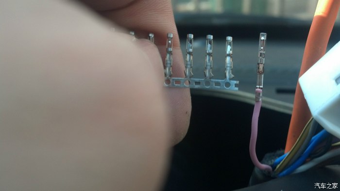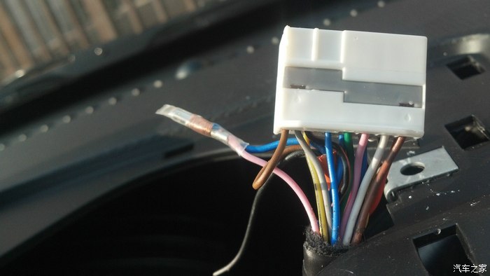 从USB模组那引两根线上来,一根和粉色线接到一起包起来做好绝缘,另一根接上杜邦端子,放到原插座的粉色线位置,扣上灰色卡扣,检查一下扣结实了,卡住你新的端子了就可以插回中控了。注意引上来那两根线,做好固定,防止汽车振动时磨破线短路!!我用的带护套的一段线,防止来回磨线。