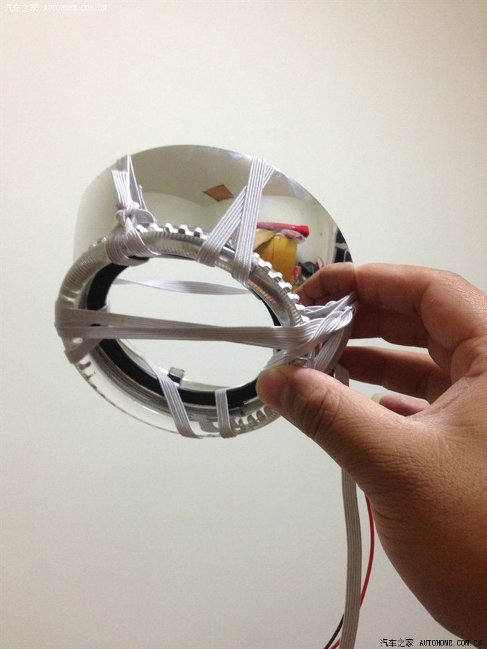 给装饰罩打孔,这样天使眼直接可以卡进去,更加牢固
