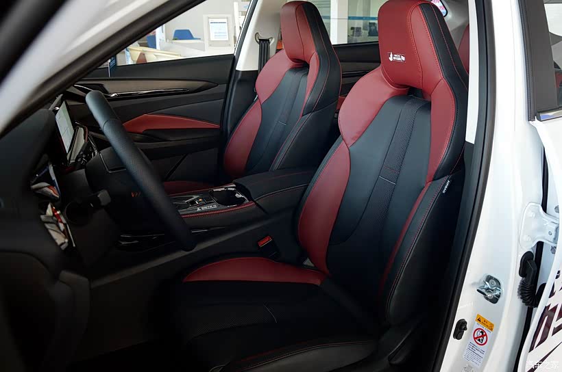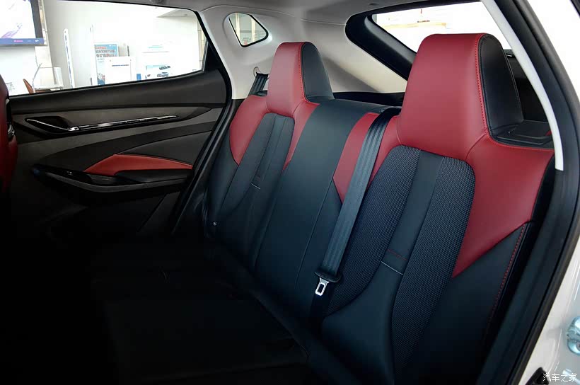 红黑配色的一体式座椅看着也是非常运动,座椅的乘坐舒适度很好,侧面具有很不错的包裹性。