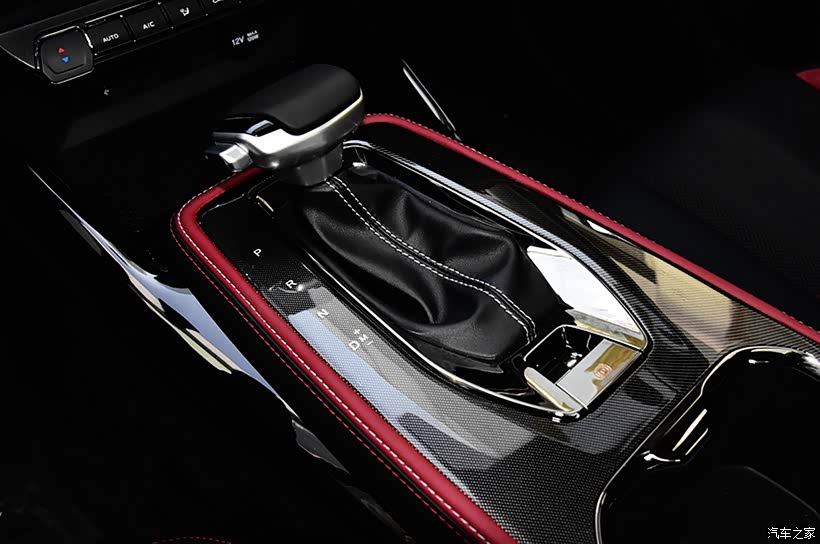 在传动方面匹配的是一台7速双离合变速箱,和UIN-T上的完全一样。中控地台简直太帅了,仿碳纤维饰板加上红色皮革包裹,品质感杠杠的。
