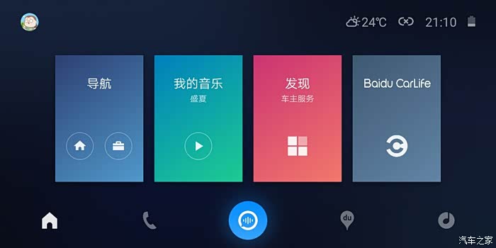 6、中控显示屏应该显示出投屏界面了,导航,音乐等四个文件夹。此时可以语音操作了。