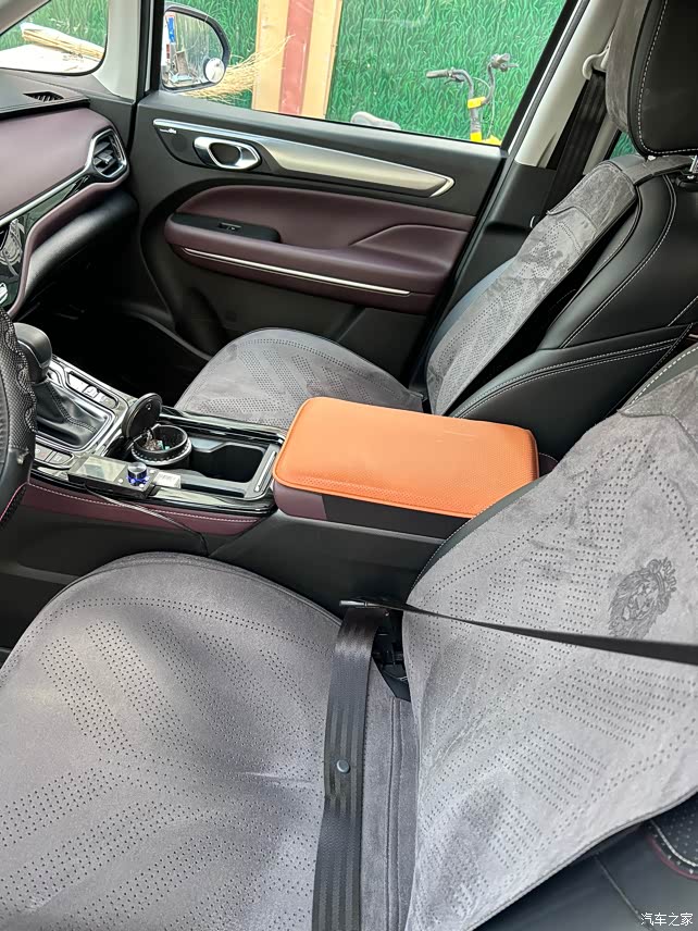 再分享一下自己的实用性小改吧…买了个扶手箱上面的垫子胳膊放上不那么硬了倒是挺得劲这个有需要的车友可以参考…排档杆这里的中控面板上贴了个不锈钢的黑色面板本身是一个亮面的贴上不沾灰了我相信这个有车的车友应该很容易就能理解这点…中排座椅中间加了一个小座椅放点东西坐坐人啥的不用怕漏座椅中间那个空里了本身我最后排座椅是不用的所以也不用利用这个空挡上最后排去……前挡那里的中控台子上放了个避光垫这个东西以前也一直用着亲测有用反光不那么强了,下面上图