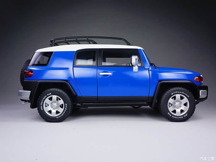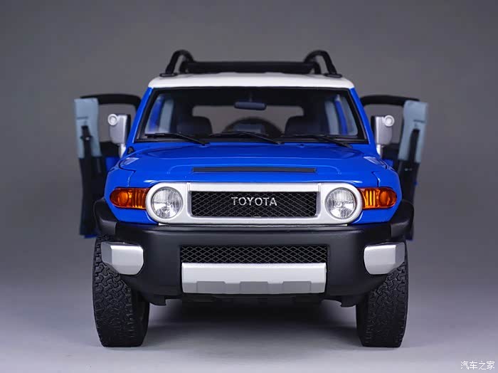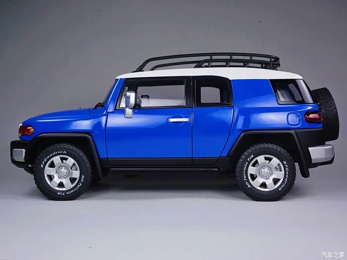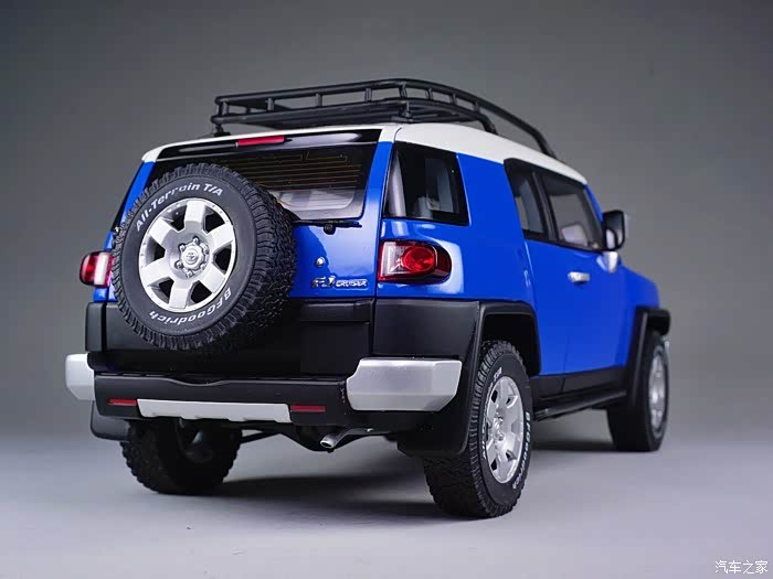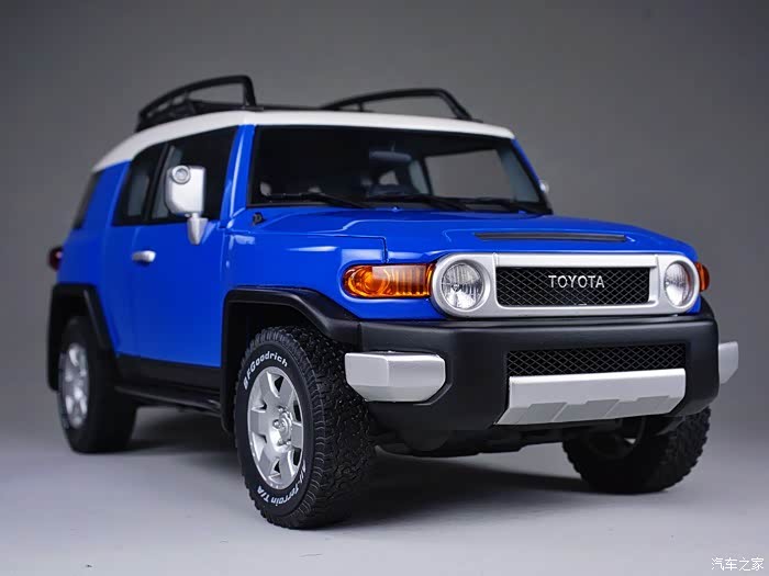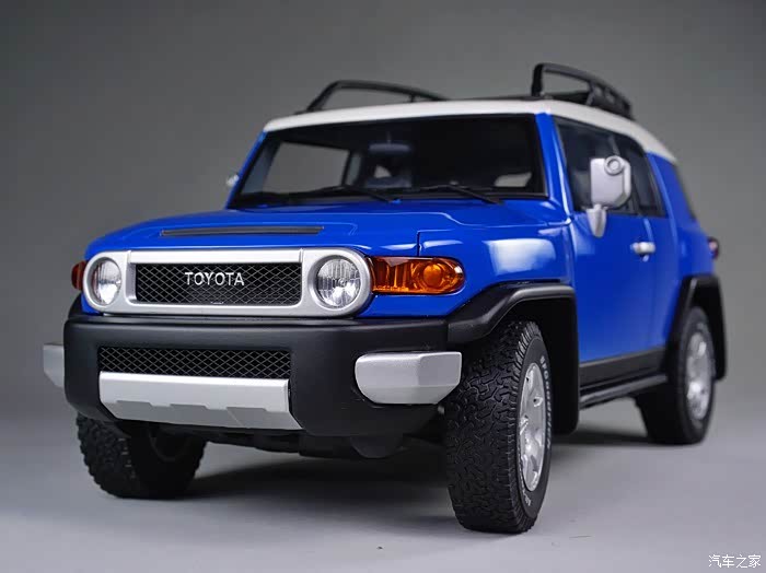 本帖的主角就是其中之一,保值率高到让你伙呆的经典款车型-TOYOTA FJ CRUISER。FJ是丰田2007年第八代LAND CRUISER车系的变型车,FJ代表这一车系的越野型,个性的外表和独具匠心的复古风格是FJ CRUISER的设计理念,从整体造型上很容易看出它和半个世纪前的FJ40有很多神似之处。更为传奇的在于这一车型的蜜汁保值率,前几天看到白宁老师在节目中介绍到2008年时50万出头的FJ CRUISER在历经十年之后,其二手车竟然能值30万!另外详细介绍了这款车型的设计、越野能力、配置情况和各方面优劣,节目使我又难解心痒地细品起不久前刚刚从一位圈内大哥手里以良心价收来的AUTOart千禧包蓝色FJ CRUISER。