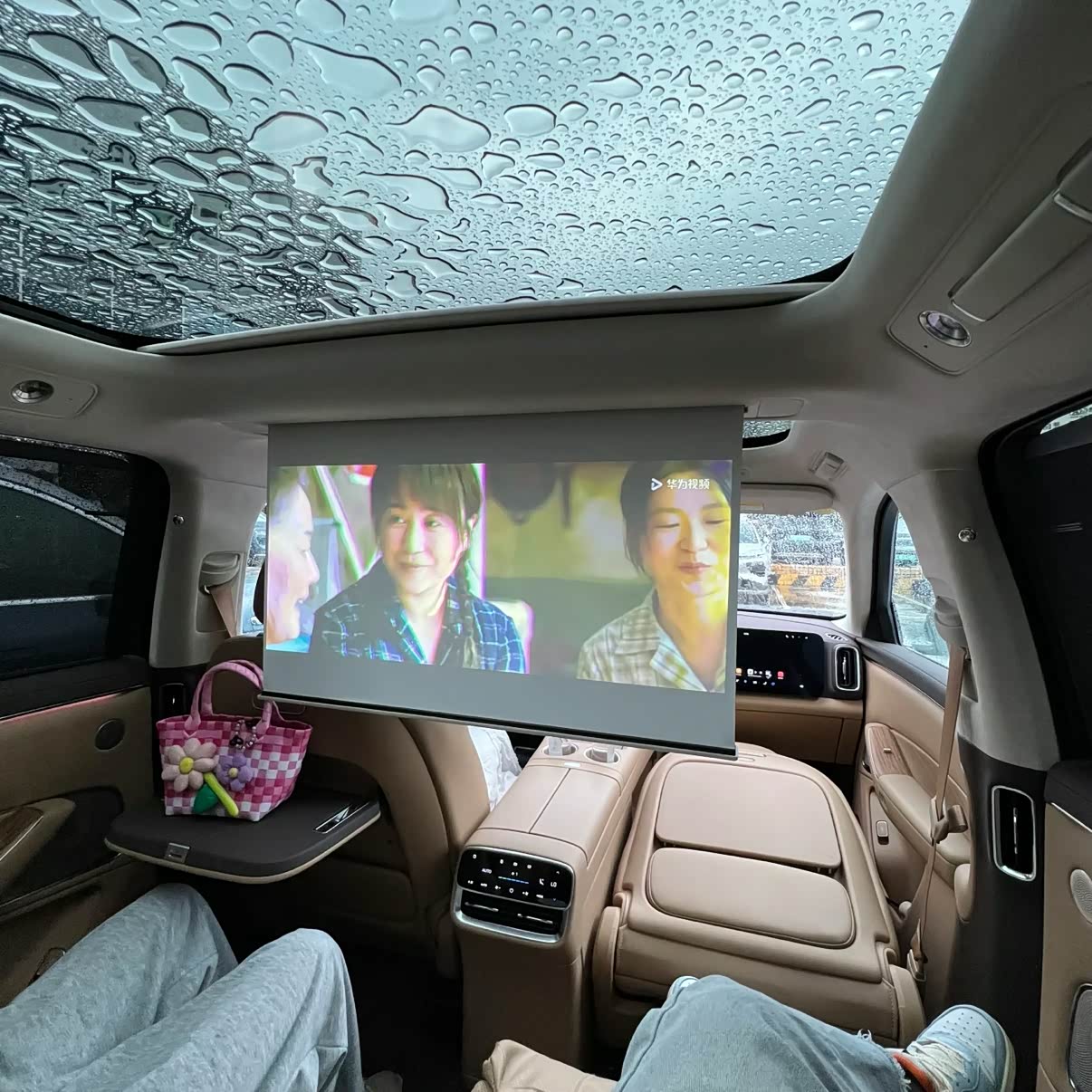 现在开了一万多公里,最大的感受是这车太会“偷空间”了。三排全打开的情况下,后备箱居然还能塞下两个28寸行李箱+婴儿车。上周全家去露营,第三排放倒后直接变成一张1米5的床,孩子在后面玩累了倒头就睡。老婆最喜欢二排的商务小桌板,现在送孩子上兴趣班,她能在车里处理工作文件,空调开着比星巴克还舒服。